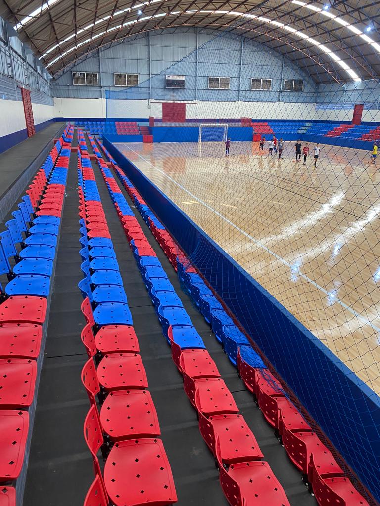 Assentos rebatíveis ecológicos para ginásios. Produzidos com materiais recicláveis, são confortáveis, duráveis e otimizam o uso do espaço.​