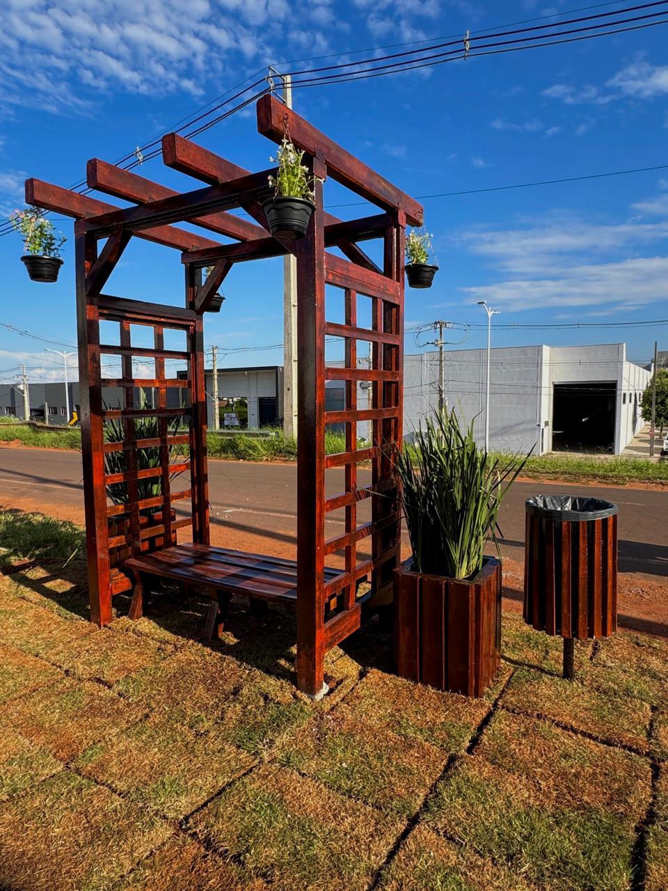 Bancos, lixeiras e estruturas feitas com recicláveis, unindo funcionalidade, design e consciência ambiental.